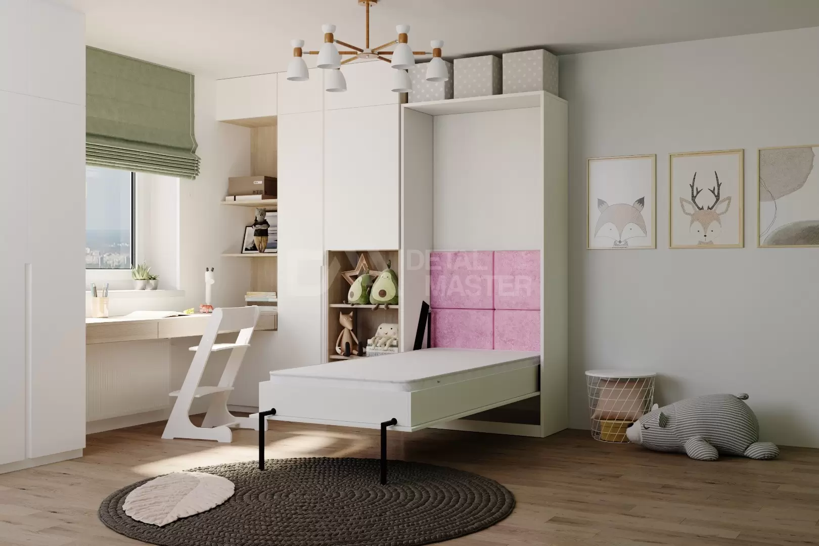 Детская шкаф-кровать "Flip Bed Start" работает на механизме раскладывания собственной разработки "Start". Кровать раскладывается легким движением руки, превращаясь в полноценное спальное место. Просто потяните ее за ручки, расположенные на фасаде и выставите ножки-опоры.