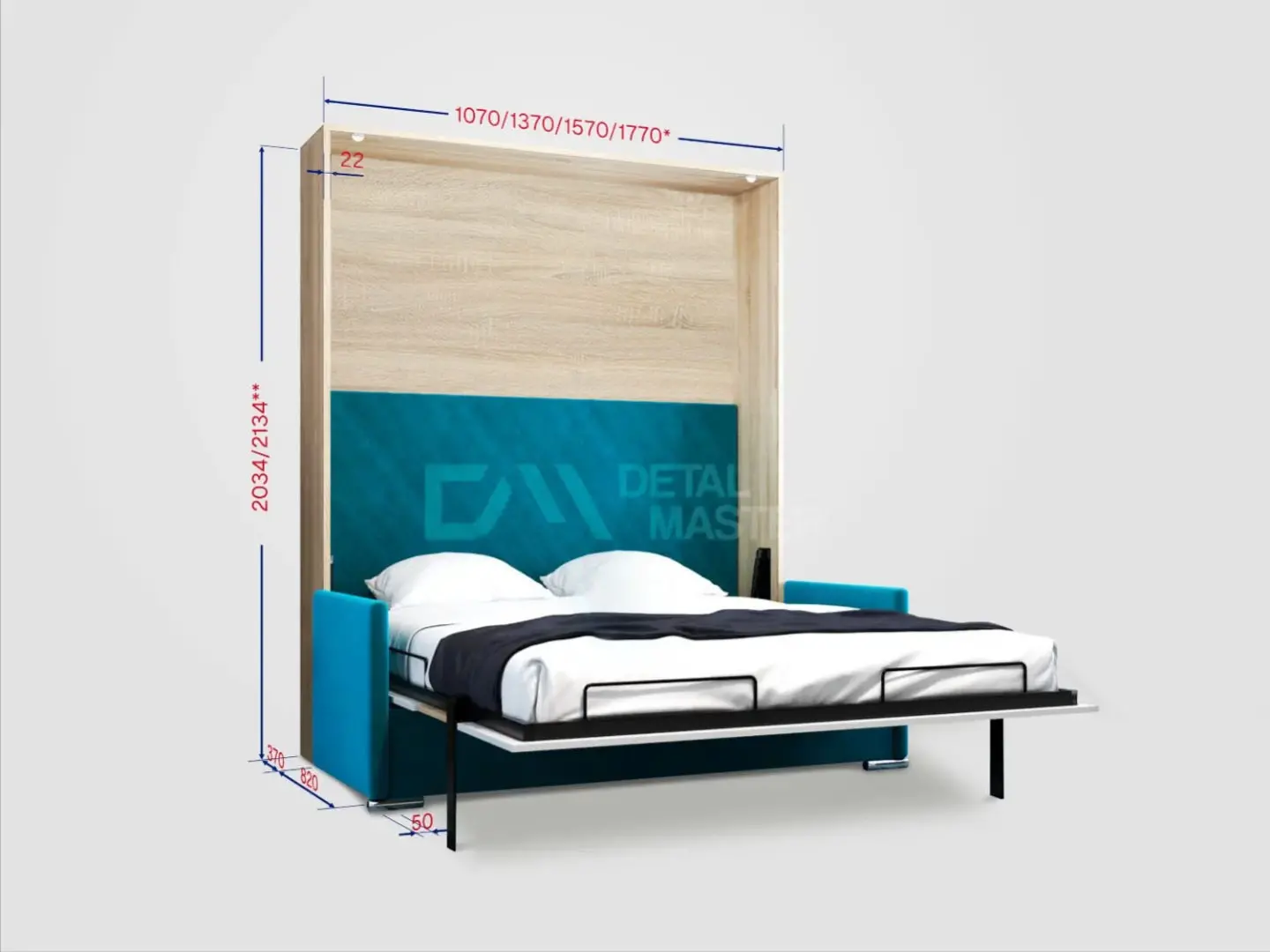 Шкаф-кровать трансформер с диваном "Comfort Balance" работает на механизме раскладывания собственной разработки "Balance". Кровать раскладывается легким движением руки, превращаясь в полноценное спальное место. Просто потяните за ножку-маятник, которая самостоятельно фиксируется в нужное положение при опускании.